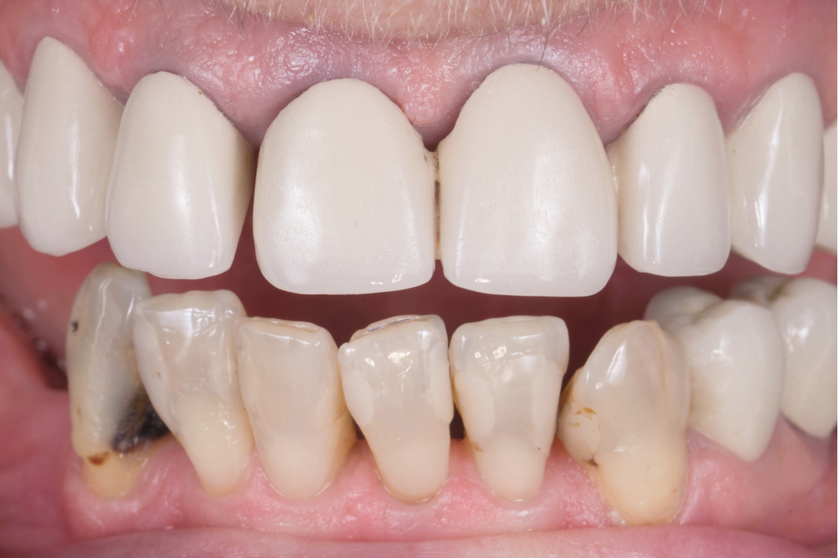 Mária ku nám merala cestu až z ďalekých Žemberoviec, aby si splnila sen o nových zuboch. Vďaka doplnenej kosti a dvom dentálnym implantátom vpravo dole sme jej dokázali zlepšiť nielen estetiku úsmevu, ale aj funkciu celého chrupu.